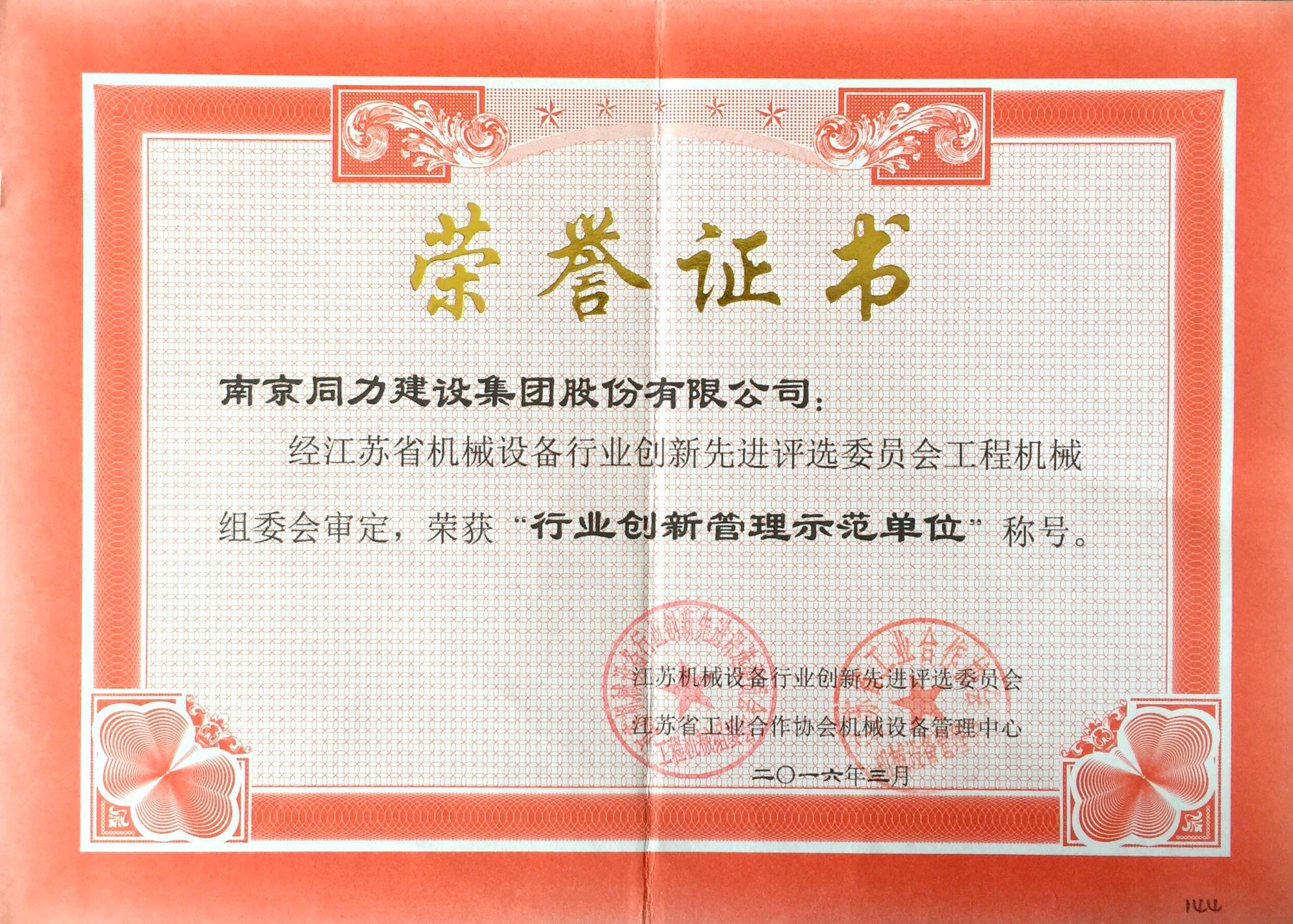 公司獲得《行業(yè)創(chuàng)新管理示范單位》