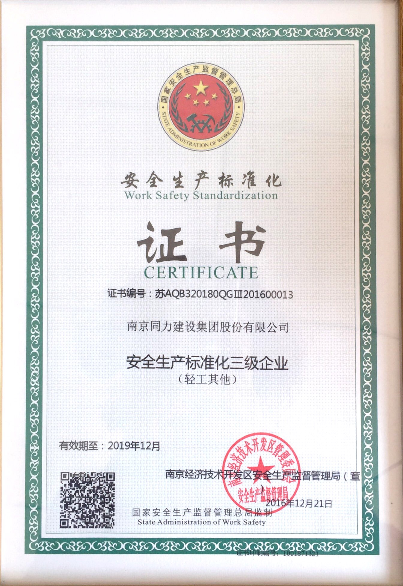 公司獲得《安全生產(chǎn)標準化三級企業(yè)》