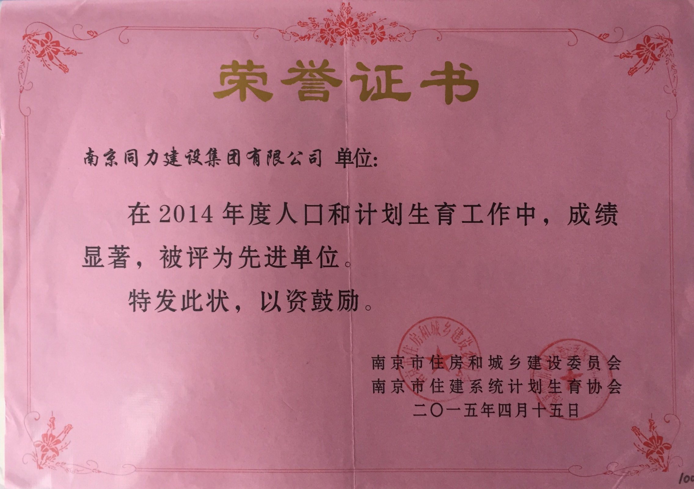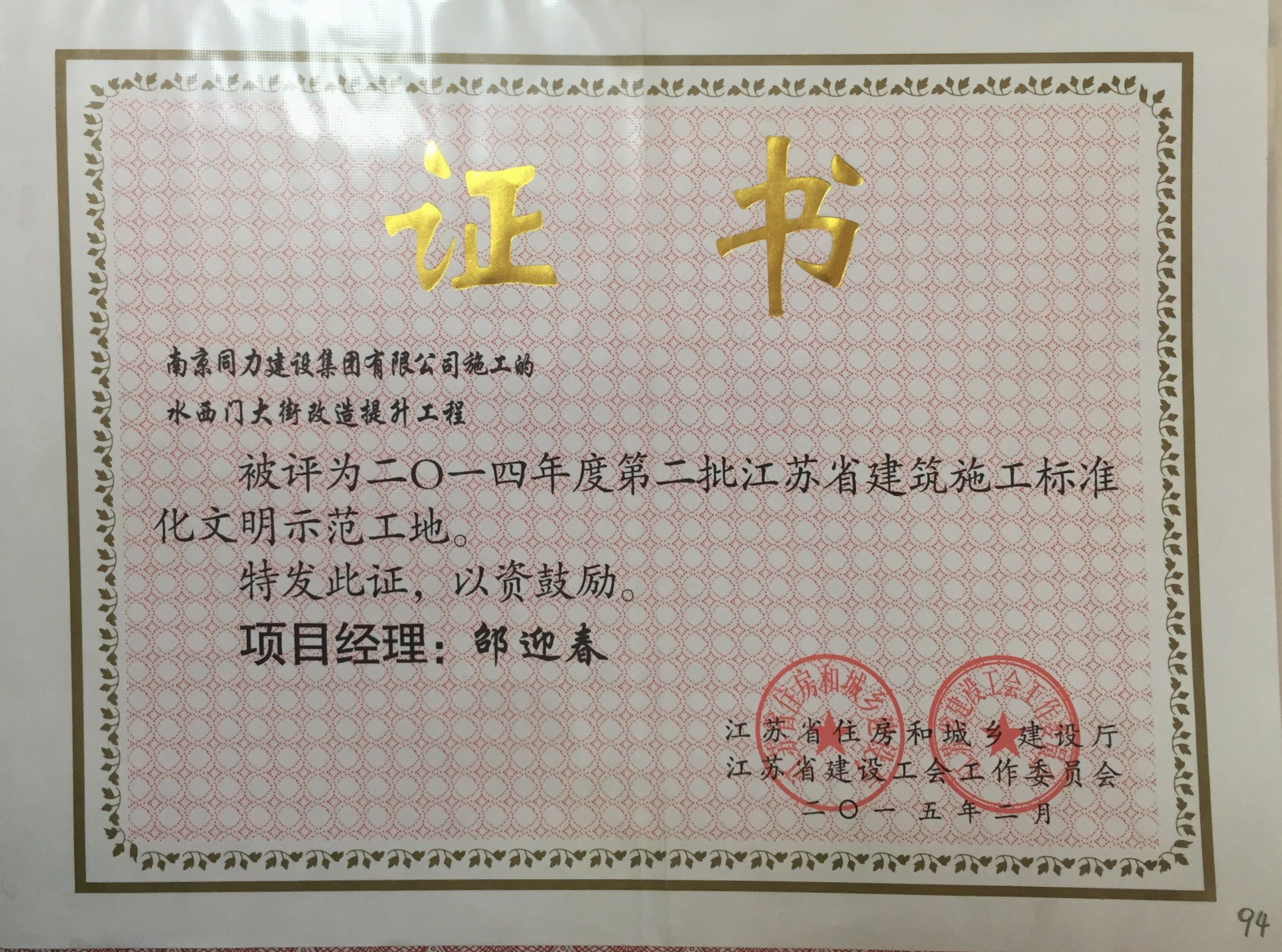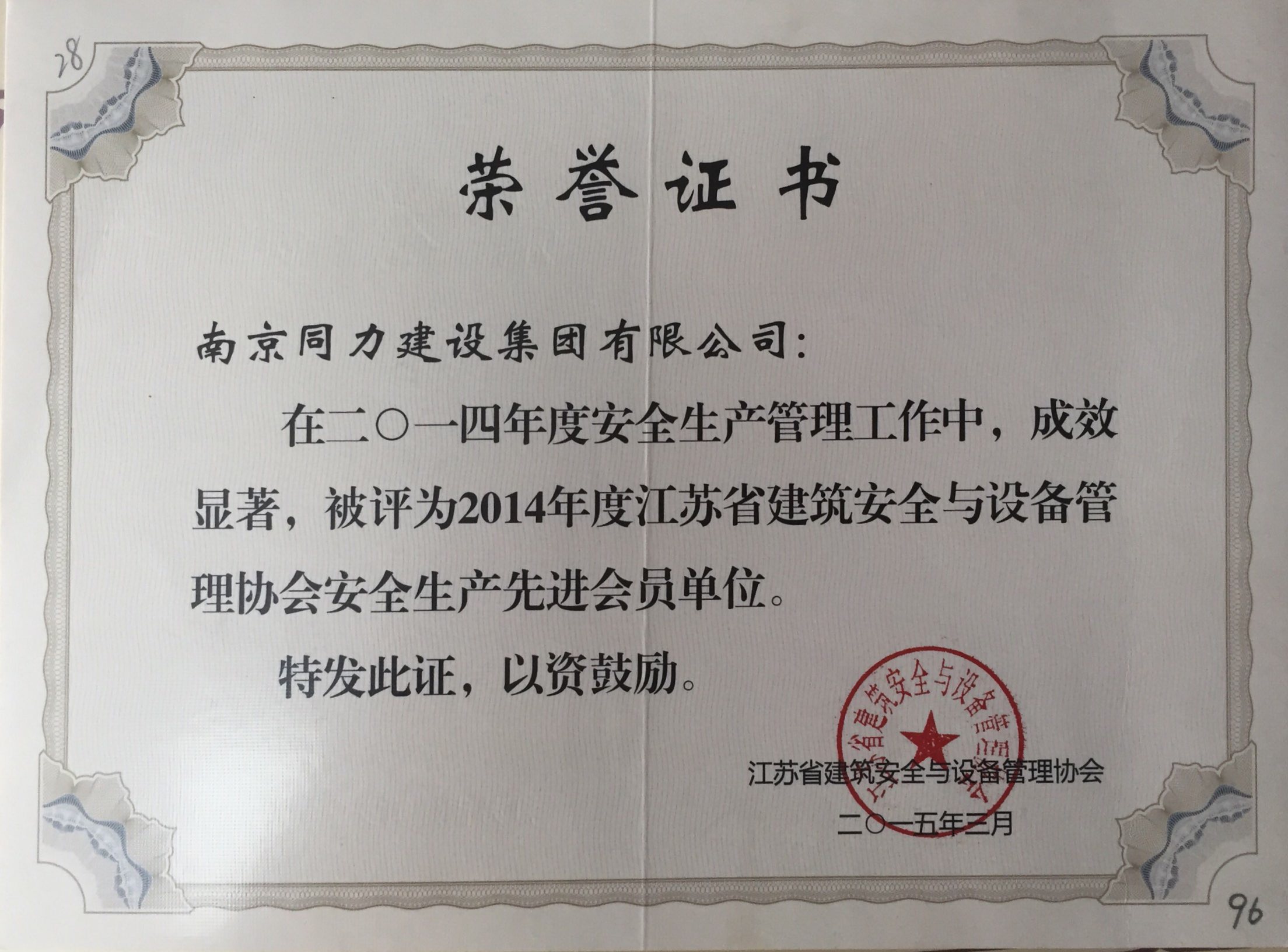 公司榮獲2014年度江蘇省建筑安全與設(shè)備...