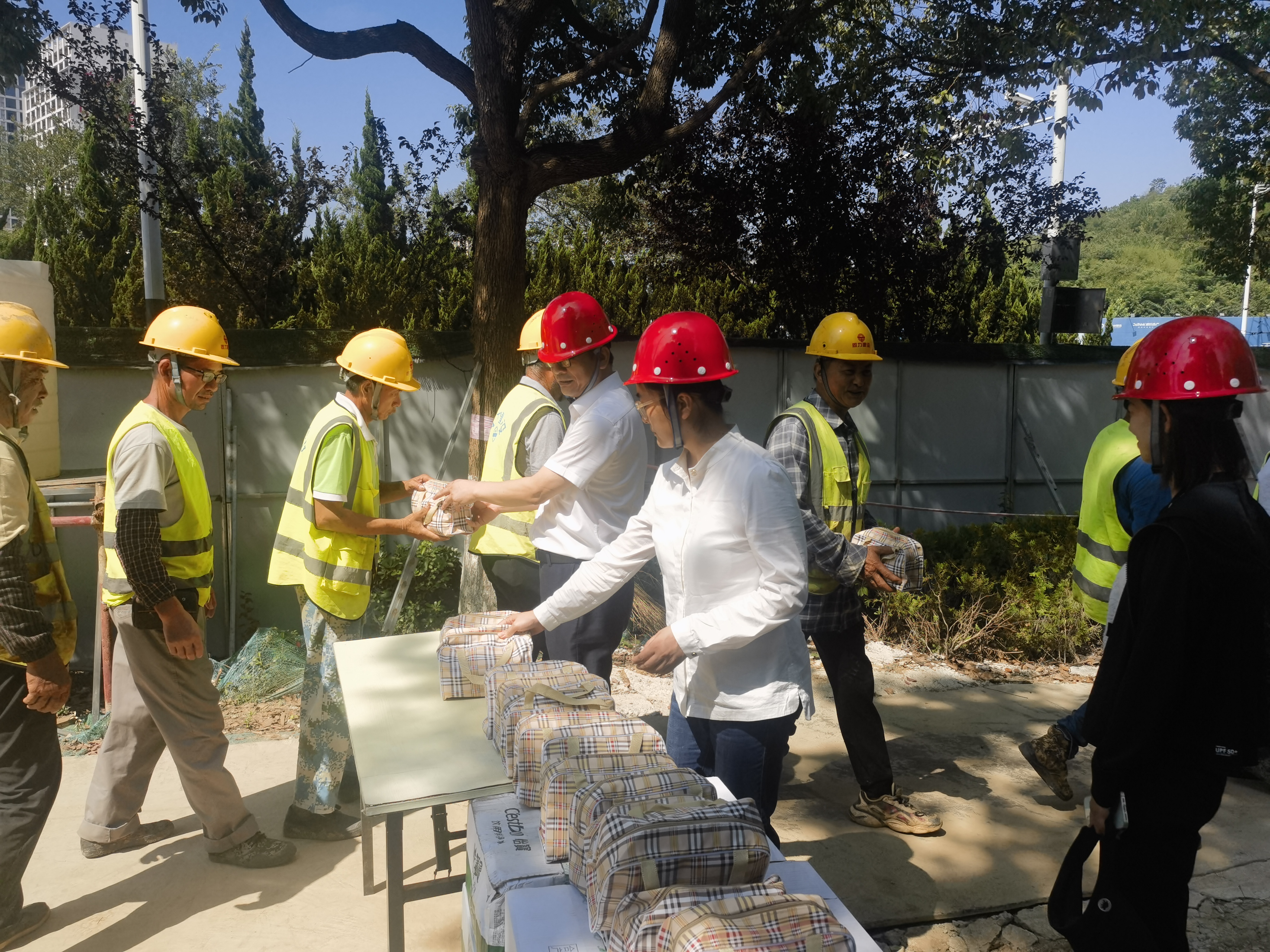 2023G03地塊配套道路改建項(xiàng)目 此次慰問為奮戰(zhàn)在項(xiàng)目一線的建設(shè)者送去了夏日里的“清涼”,讓堅(jiān)守在烈日下的一線作業(yè)人員感受到了公司的深切關(guān)懷和濃濃關(guān)愛。同力建設(shè)將恪守以人為本、安全為要的發(fā)展理念,持續(xù)落實(shí)好各項(xiàng)關(guān)懷舉措,保證各項(xiàng)工作高質(zhì)量、安全、有序開展。